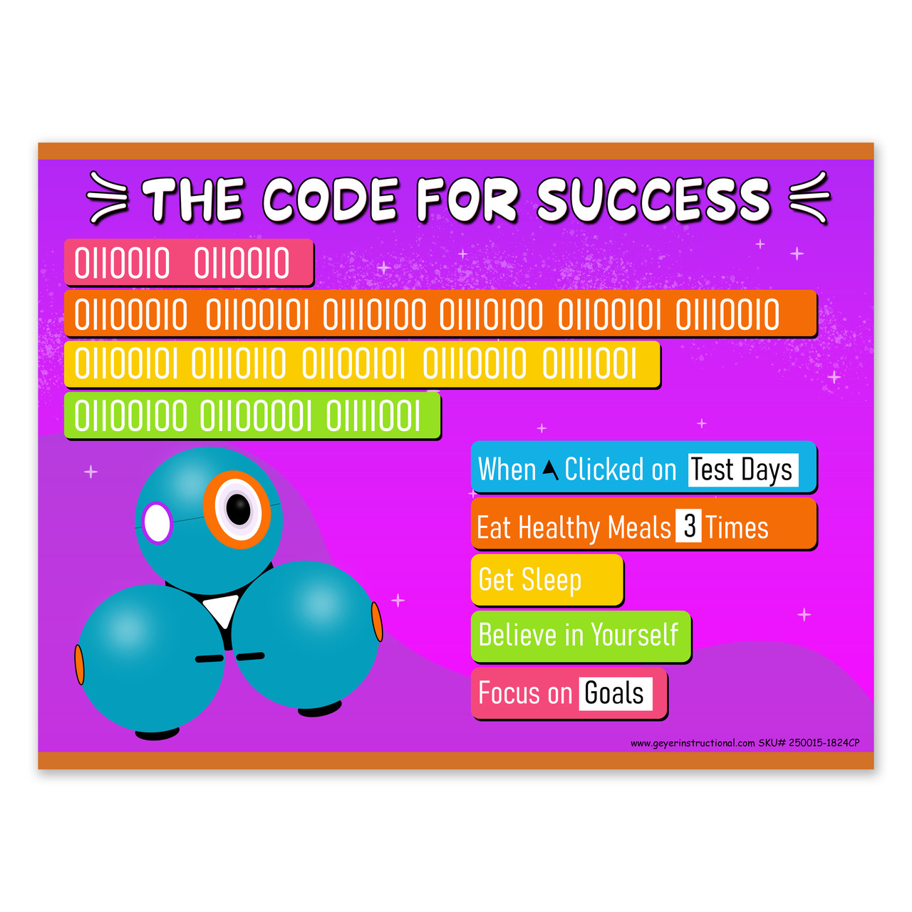 Encourage young coders with the “Coding for Success” Dash Robot Poster. Designed to engage students in STEM learning, this 18x24-inch poster is made from lightweight, corrugated plastic, making it ideal for classroom walls, makerspaces, or STEM fairs. The bold, kid-friendly design features Dash the robot and motivational coding messages to support interactive learning environments.
