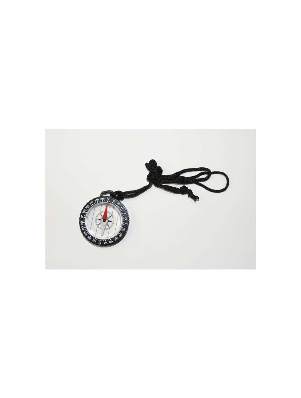 Durable, liquid-filled clear magnetic compass is housed in a black plastic rotatable bezel. Graduated in 5° increments. Outer diameter of bezel is 45mm. Outer diameter of clear compass is 35mm. Includes a lanyard.