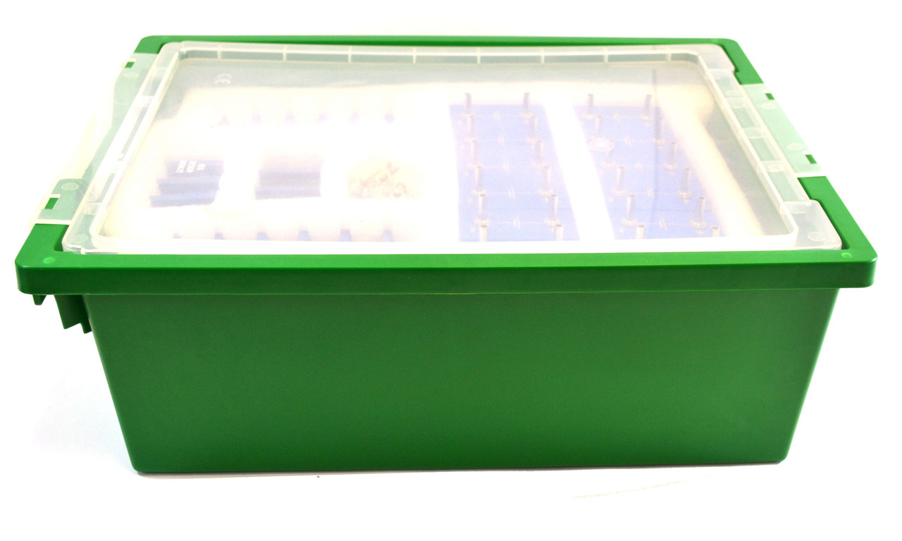 Each component such as a switch, rheostat, bulb holder, etc., is mounted on its own individual plastic panel with 4mm sockets. The panels are then formed into circuits by using 4mm stackable leads. Because this is “real circuit making,” this kit is great for grade 6 through 12 classrooms. It is very comprehensive and flexible. Each kit is supplied in two polystyrene trays that keep the units organized.