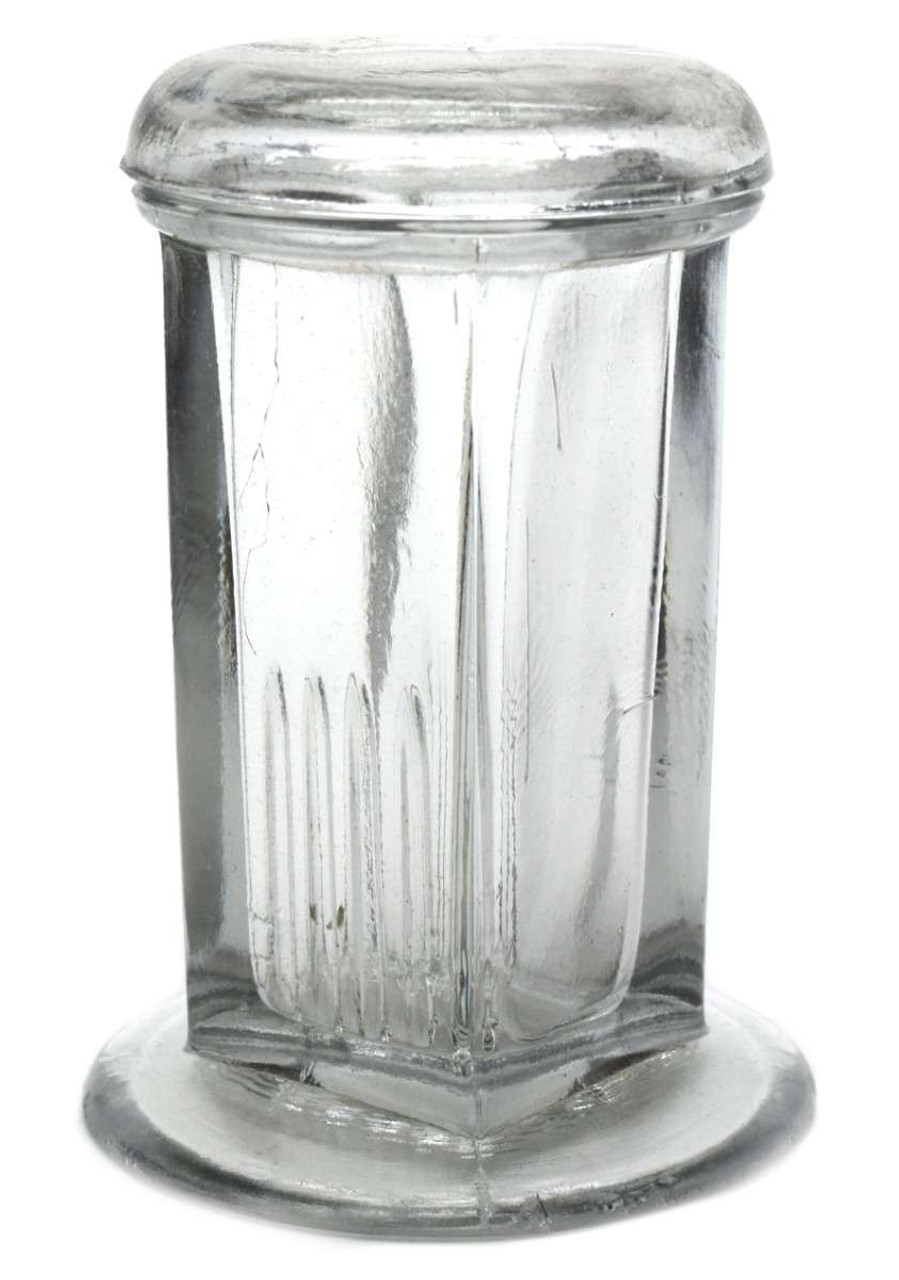 Glass jar, with molded glass cover, takes 5 slides 76 x 25 mm
