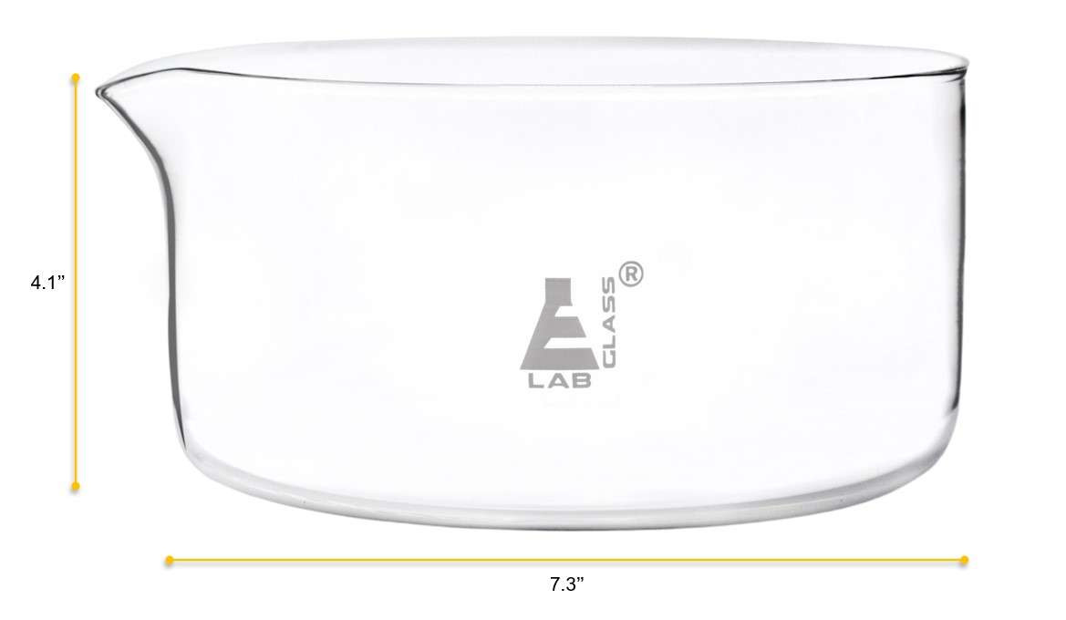 2000ml capacity crystalizing dish made of high-quality, heavy-duty Borosilicate 3.3 glass. Features a flat base, and beaded rim. Spout for easy pouring.