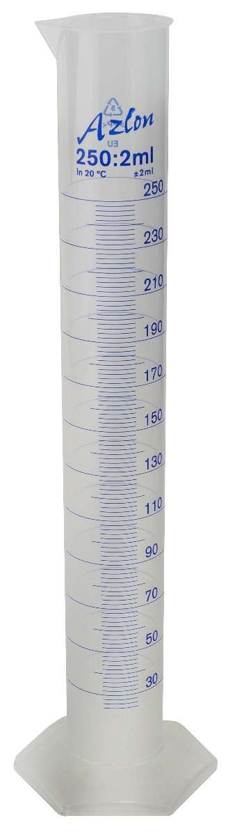 Cylinder Printed Graduated, PP 250mL, Case of 10