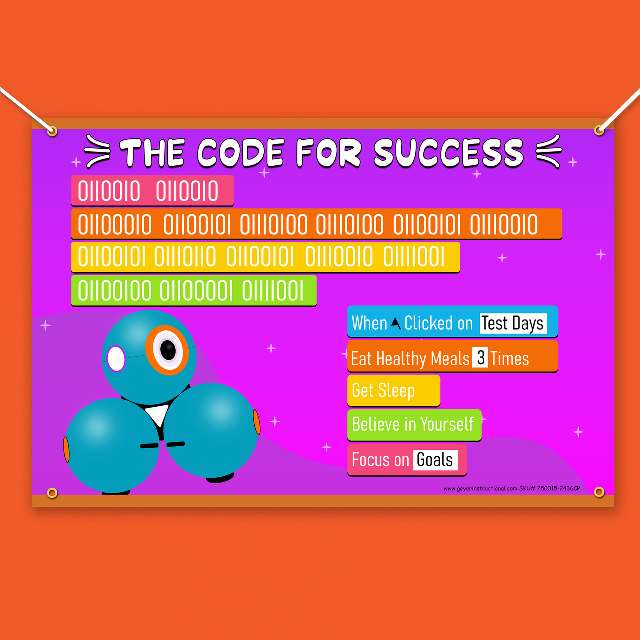 Bring coding inspiration to your learning space with the Coding For Success Poster featuring the Dash Robot. This eye-catching 24"x36" display is made from tough 13 oz matte vinyl for lasting durability. With grommets for easy hanging, it’s perfect for STEM classrooms, libraries, or makerspaces. Reinforce the excitement of programming with a vibrant and motivating message that encourages students to think critically and creatively.