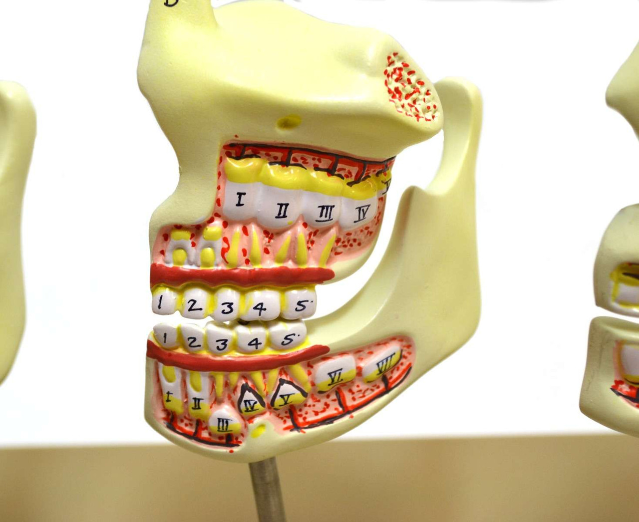 Detailed 3D rendering of the stages of dentition of a human with its vibrantly colored anatomy is ideal for studying the development of human teeth.