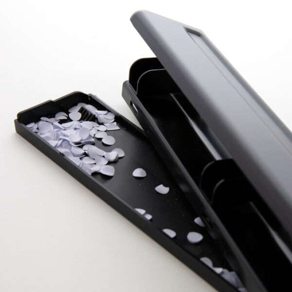 - EASY CLEAN. The puncher features a built-in waste clip tray for collecting the debris after punching, and then dumping it into the trash can; it saves clean up time and maintains a clean work environment.