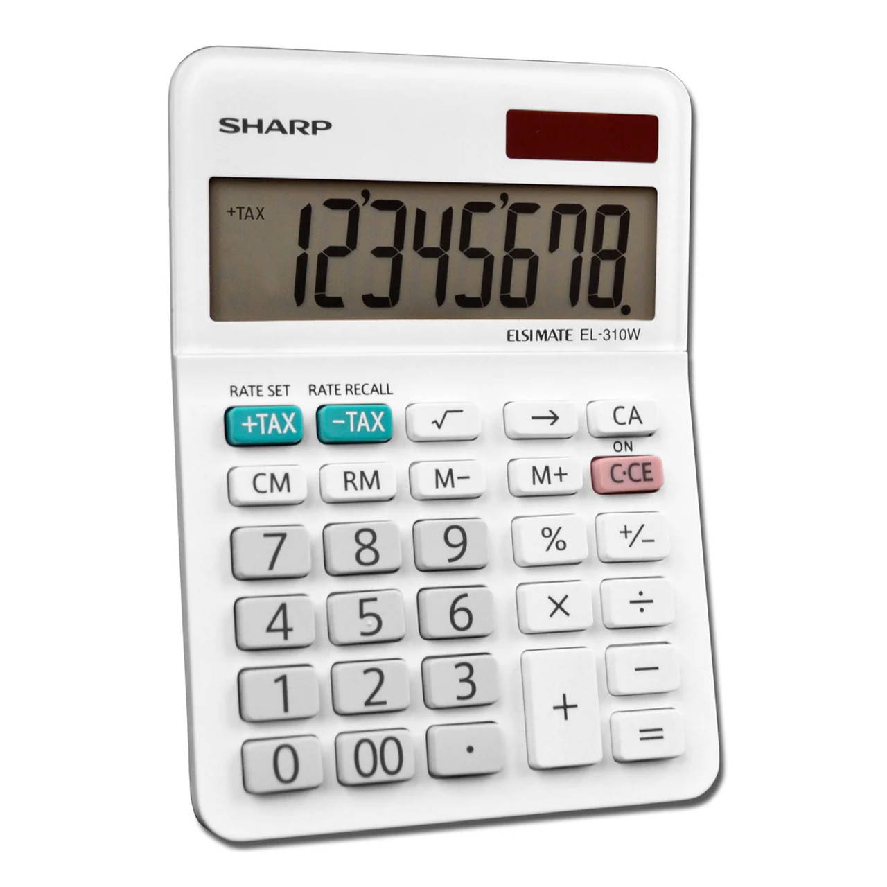 8 digit professional mini-desktop calculator is perfect for business professionals at home or in the office. The EL-310WB is finished in a modern white design and features a large angled LCD display and durable plastic keys.