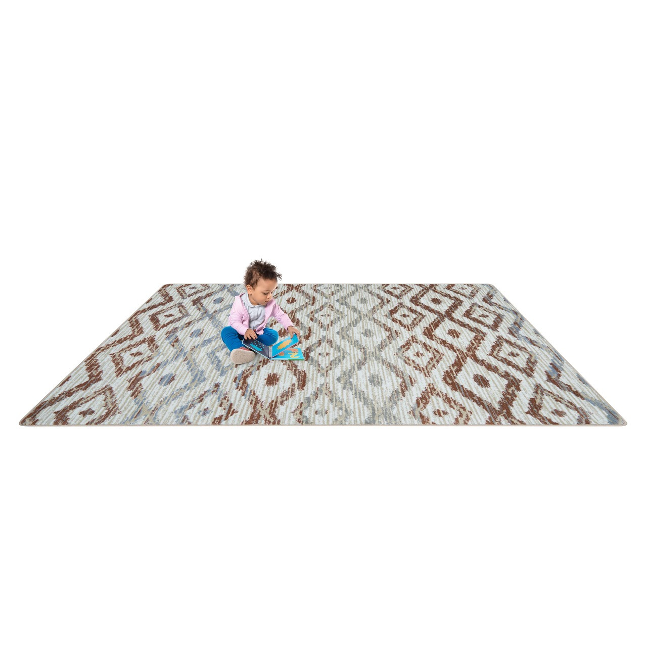 This tribal diamond motif celebrates cultural diversity while infusing any space with a sense of home and warmth. Designed to evoke feelings of comfort, togetherness, and well-being, these carpets enrich the classroom atmosphere with inviting colors and a cozy, homey aesthetic.