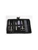 Economy set of stainless steel dissecting instruments in a folding vinyl pouch.