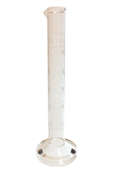 Double-scale graduated cylinder with a 25ml capacity, designed for precise liquid measurements in laboratory environments.