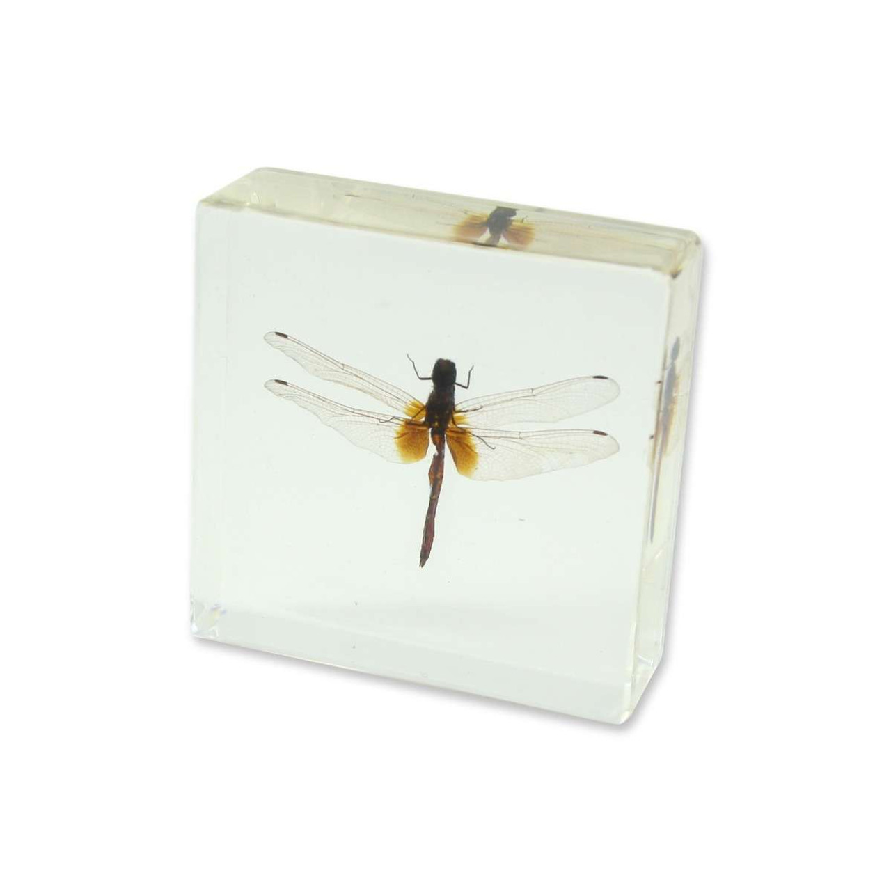 This paperweight has a REAL Dragonfly encased in clear square acrylic. This unique Dragonfly is packaged in their own clear packaging. The size of the acrylic is 3 1/2 x 3 1/2 x 1 1/4 in. Each Dragonfly is unique and different and may differ from the picture shown.