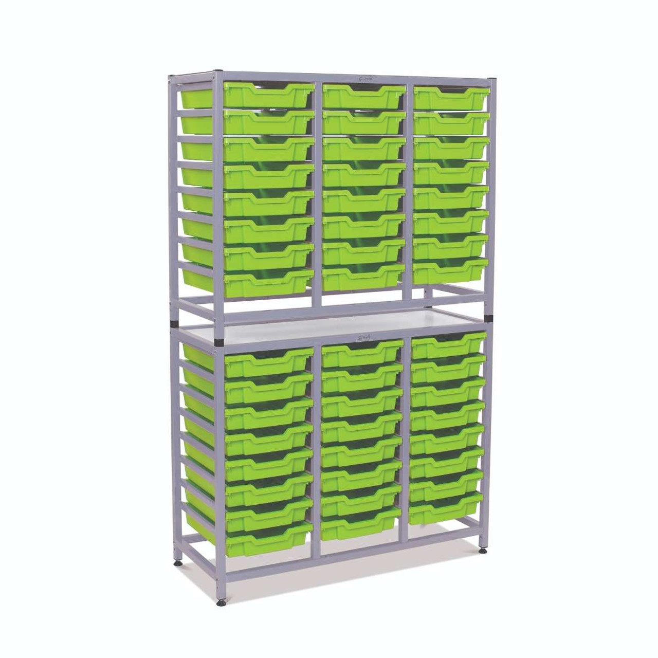 The Dynamis Combo Cart range from Gratnells is a flexible, cost-effective storage system, compatible with the award-winning Gratnells tray range. With both static frame and cart options available, the Dynamis range is perfect for any classroom environment. Gratnells trays are interchangeable between cart and frame options. You can easily move equipment around the school as needed. Dynamis Combo Cart Set 20 Silver (44) with feet 48 Shallow 3 inch deep Jolly Lime (36) Trays