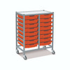 The Dynamis Double Cart range from Gratnells is a flexible, cost-effective storage system, compatible with the award-winning Gratnells tray range. With both static frame and cart options available, the Dynamis range is perfect for any classroom environment. Gratnells trays are interchangeable between cart and frame options. You can easily move equipment around the school as needed. Dynamis Double Cart Set 5 Silver (44) with 3" 2 Braked Casters & Optional Feet and 16 , 3 inch deep Tropical Orange (01) Trays