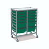 The Dynamis Double Cart range from Gratnells is a flexible, cost-effective storage system, compatible with the award-winning Gratnells tray range. With both static frame and cart options available, the Dynamis range is perfect for any classroom environment. Gratnells trays are interchangeable between cart and frame options. You can easily move equipment around the school as needed. Dynamis Double Cart Set 23 Silver (44) with 3" 2 Braked Casters & Optional Feet and 8- 3 inch deep and 4-6 inch Grass Green (10) Trays
