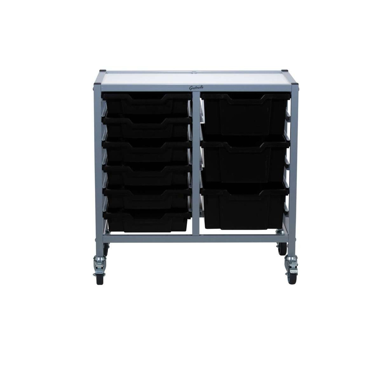 The Dynamis Low Double Cart range from Gratnells is a flexible, cost-effective storage system, compatible with the award-winning Gratnells tray range. With both static frame and cart options available, the Dynamis range is perfect for any classroom environment. Gratnells trays are interchangeable between cart and frame options. You can easily move equipment around the school as needed. Dynamis Low Double Cart Silver (44) Set 43 with 3" Casters, 2 braked & Feet 6-3 inch and 3- 6 inch Jet Black (21) Trays