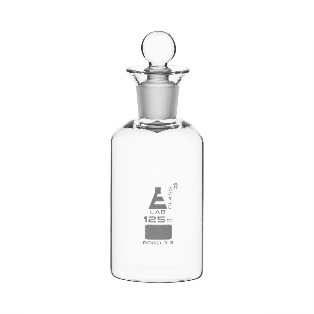 Eisco Labs: 125ml Borosilicate Glass Bottle with Hexagonal Stopper, Socket Size 19/26