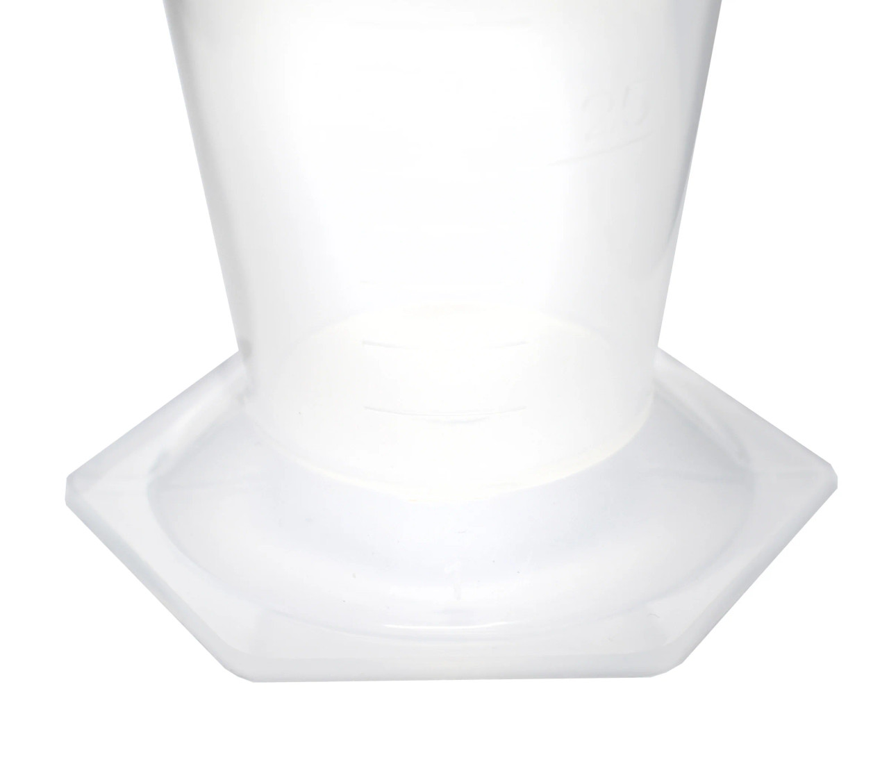 - Measuring cup features a conical shape and a hexagonal base for maximum stability