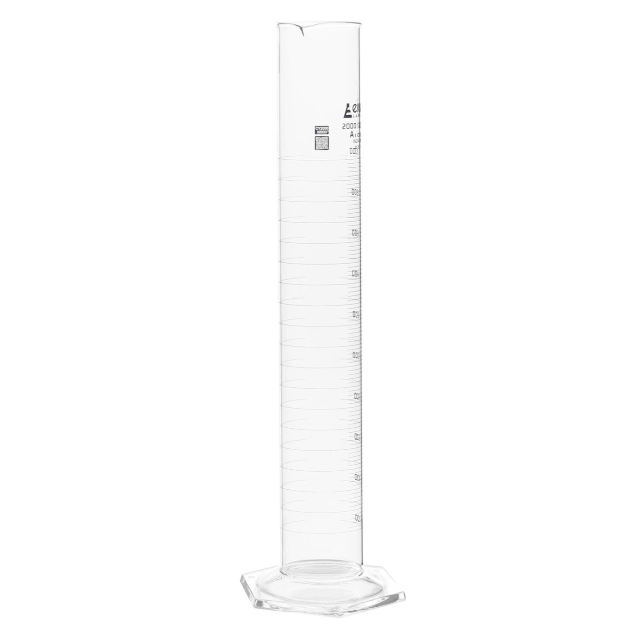 2000mL capacity measuring cylinder made of high quality, heavy duty borosilicate 3.3 glass. Hexagonal base for extra stability. Class A tolerance ±10.00mL.