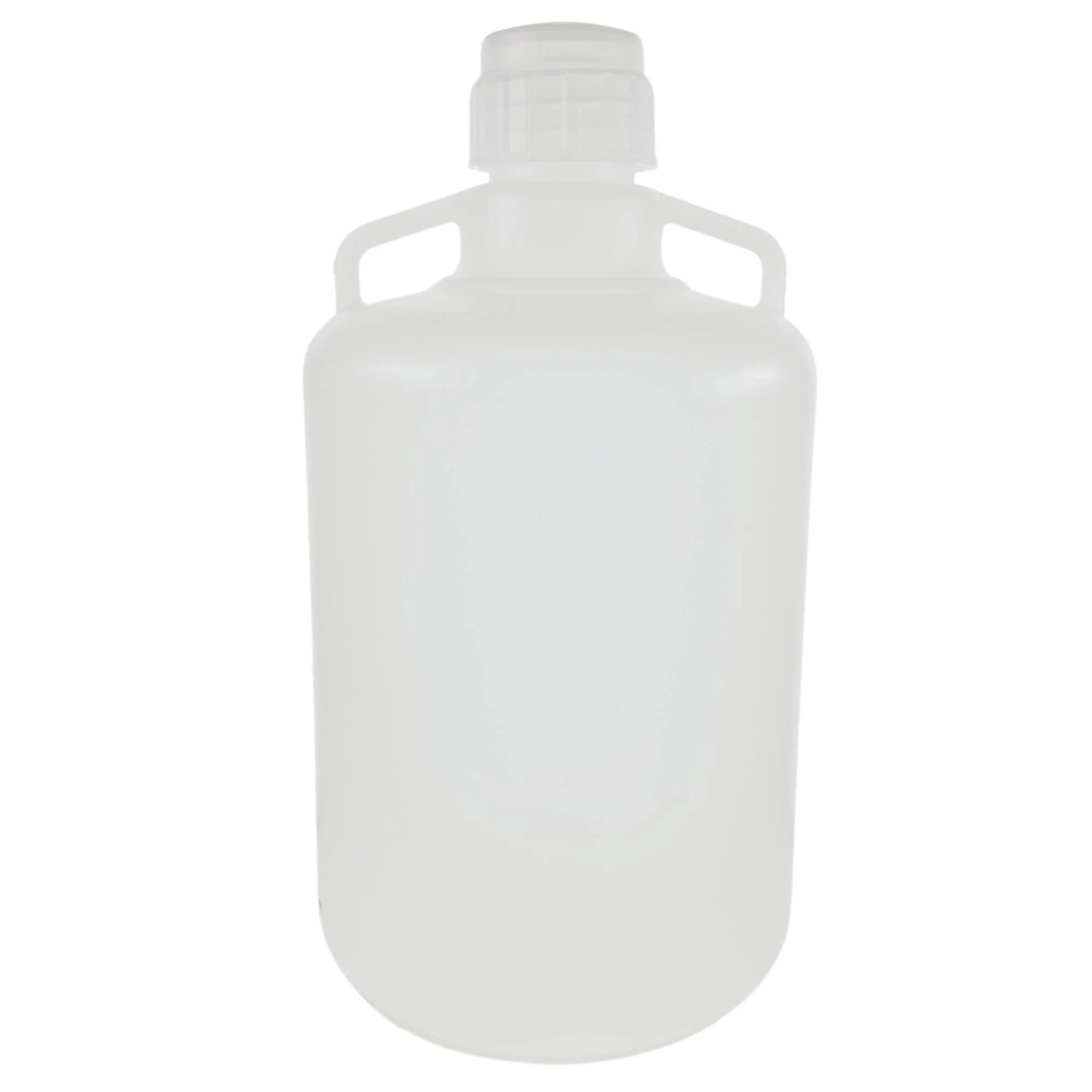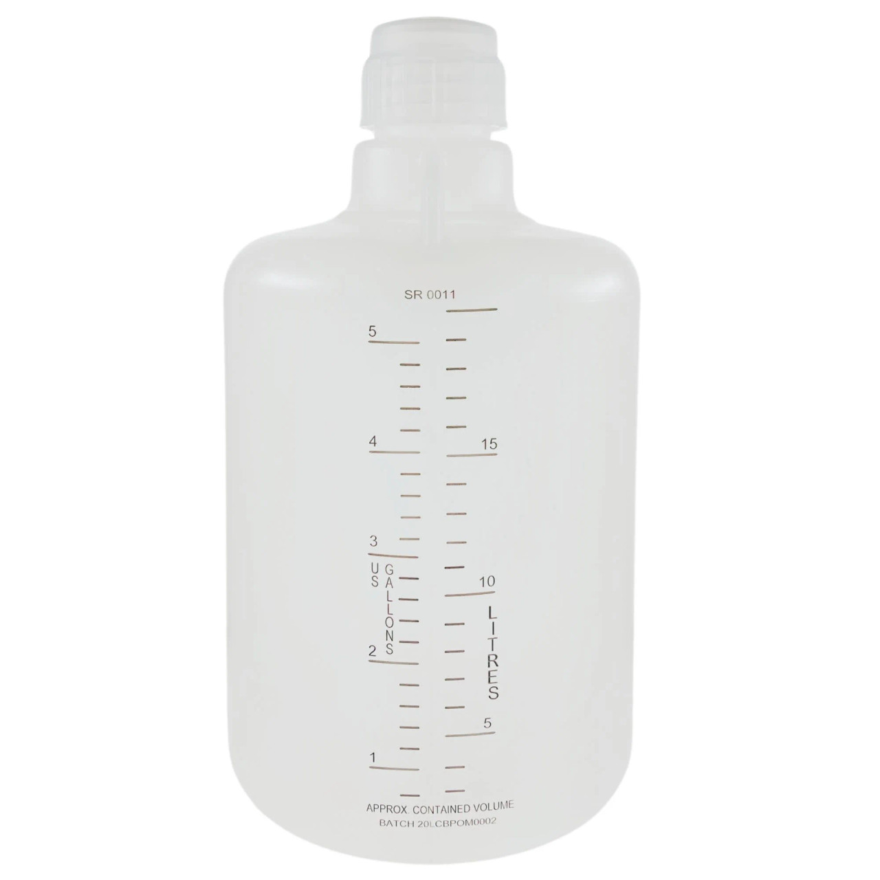 The Eisco 20L polypropylene carboy features a silicone-lined polypropylene cap and is designed for safe and efficient liquid storage in scientific and laboratory settings. Tested for leakproof performance and crack resistance, it is autoclavable up to 135°C. Certified FDA 21 CFR 177.1520 and USP 88 Class VI, this durable carboy is ideal for reagent storage, mixing, and transportation. No spigot included. Non-sterile.