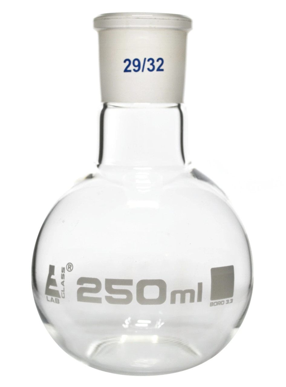 Eisco Labs: 250ml Florence Boiling Flask - 29/32 Joint, Interchangeable - Borosilicate Glass - Flat Bottom, Short Neck