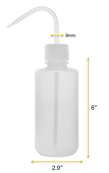 500ml capacity wash bottle, made of high-quality LDPE. Translucent, flexible, and unbreakable. High chemical durability and moderate heat tolerance. Can withstand temperatures between -50°C and 80°C. Good resistance to acids, alcohols, and bases.