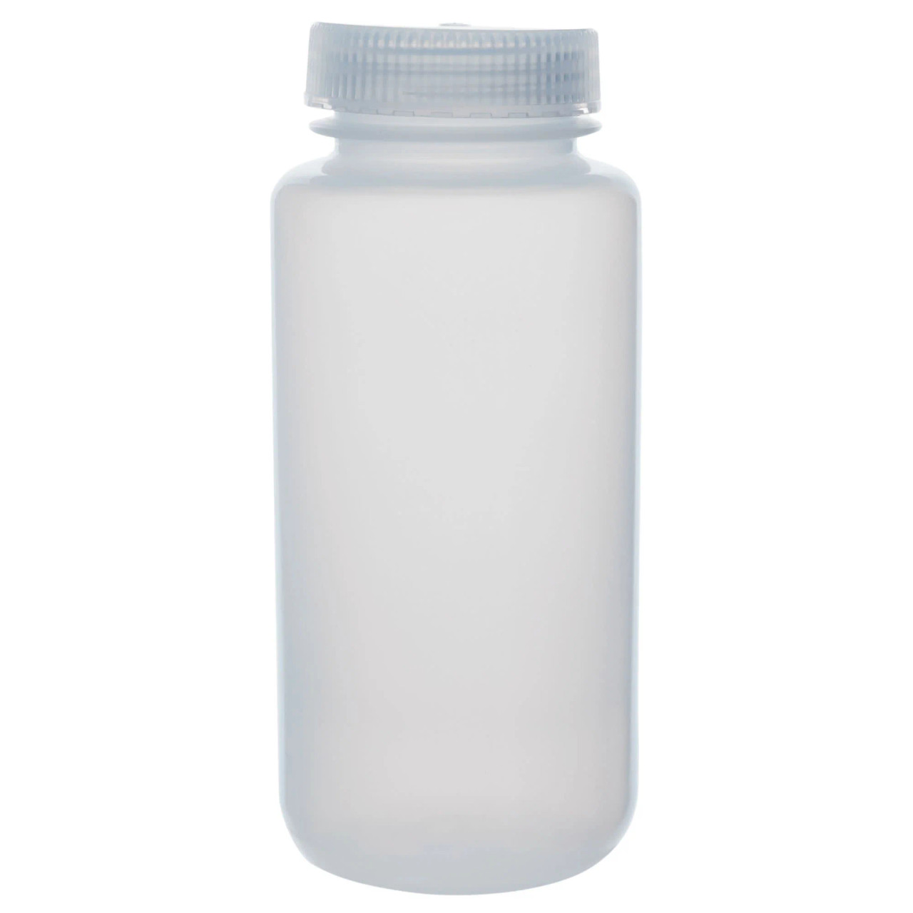 500mL wide mouth LDPE reagent bottles with polypropylene caps, available in a pack of 12. Non-sterile and non-autoclavable, with a temperature range of -100°C to 80°C.