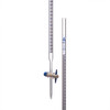 This 50mL capacity Schellbach Burette is made of high-quality, heavy-duty borosilicate 3.3 glass - built to last. A white backing with a central blue line runs the outside length of the tube opposite the graduations, so the meniscus is clearly visualized. Features a straight bore, PTFE key stopcock for controlling the flow of liquids, and blue markings which provide excellent contrast against clear liquids. Calibrated to deliver, accurate to Class A, DIN ISO 385 standards with 0.1mL graduations and ±0.05mL tolerance. Includes calibration certificate from an ISO-accredited laboratory. Burette measures 31.5" long with a 14mm (0.6") outer diameter.