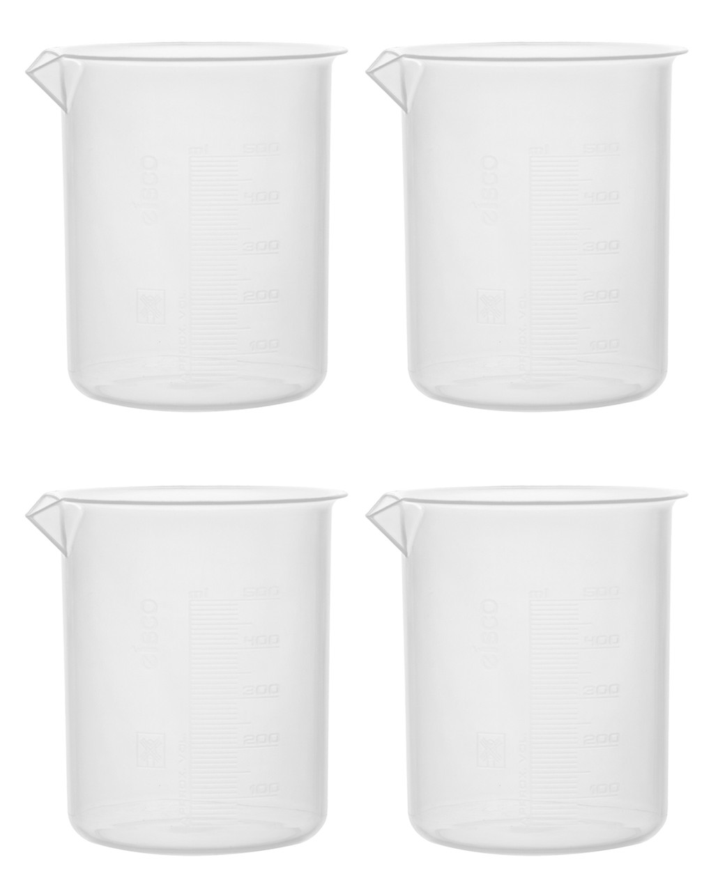 Eisco Labs: Beaker – Euro Design, Polypropylene, 500ml, Pack of 4