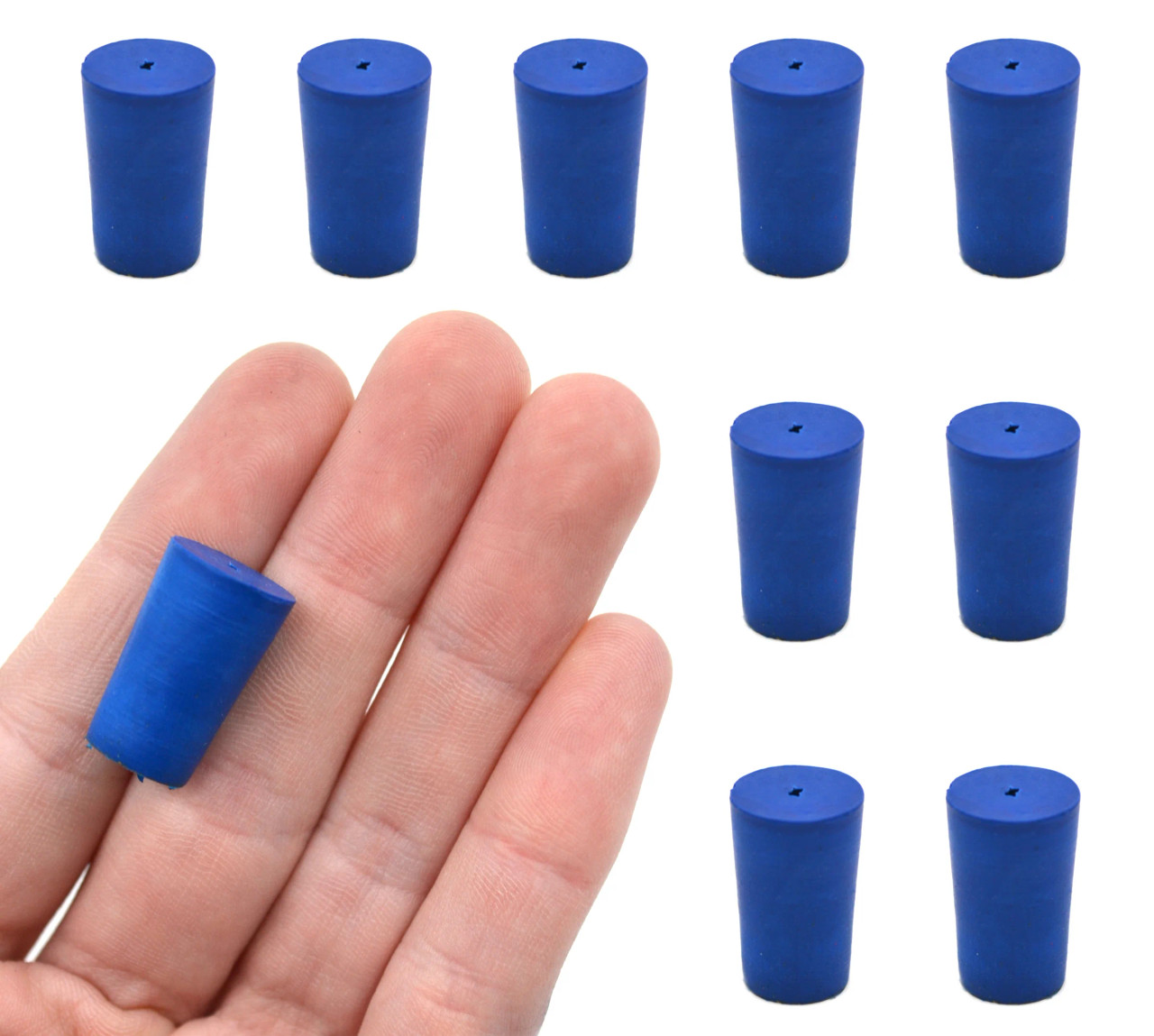 - NEOPRENE STOPPERS WITH SINGLE HOLE ||Pack of 10 neoprene rubber stoppers. Each stopper features a single hole measuring 5mm in diameter. Blue color