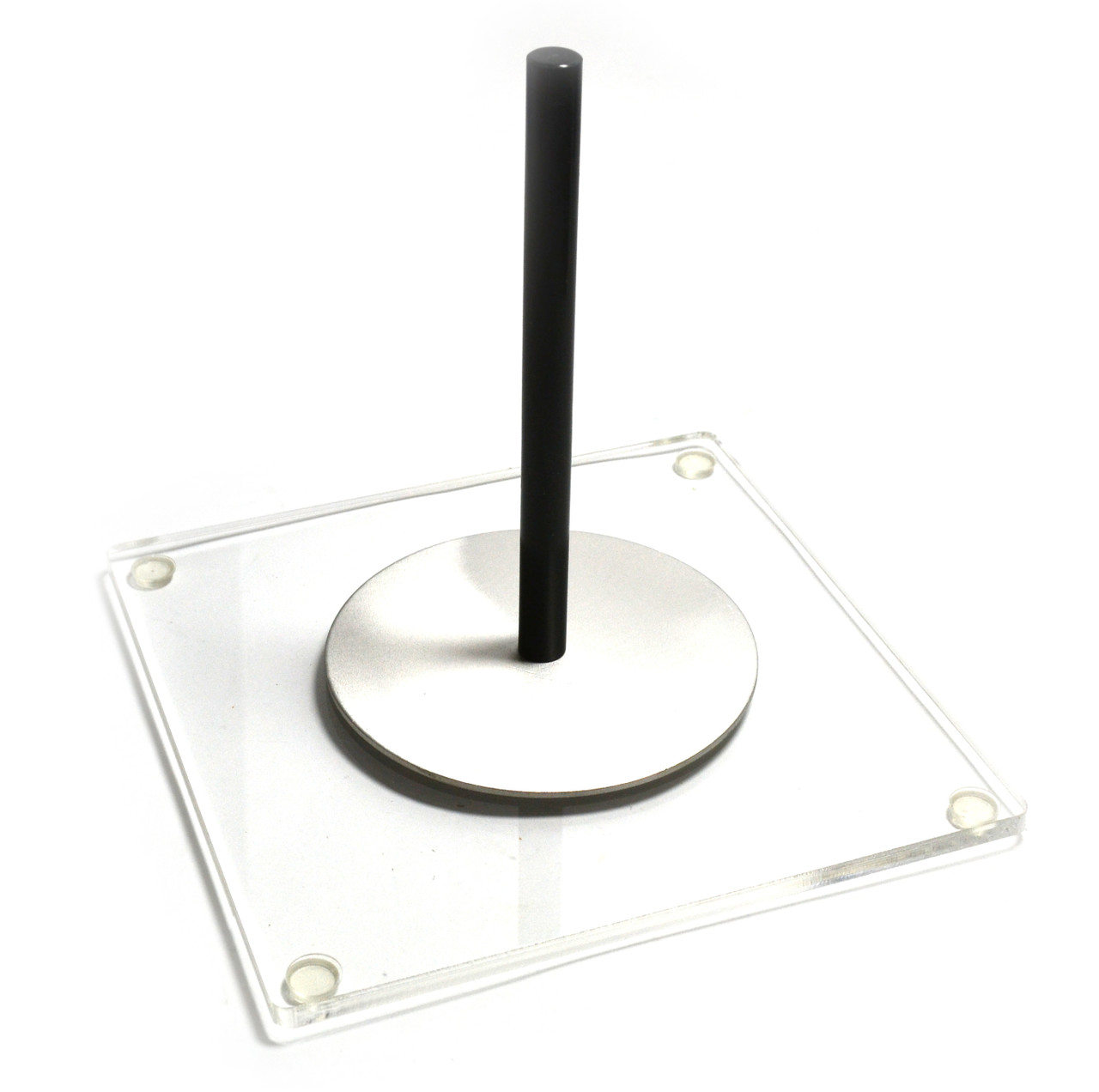 isco Labs Electrophorus Demonstration produces a strong spark repeatedly, without recharging. The base is thick plastic with four rubber feet attached for convenient handling. The plastic material produces a strong frictional charge when rubbed with fur or other material due to the triboelectric effect. The 9 cm diameter aluminum plate is designed to eliminate any sharp edges which could cause leakage. An insulating handle is attached.