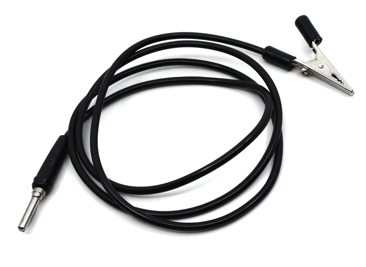 Insulated, black connecting lead. Alligator clips on one end, 4mm plugs on the opposite end. Lead measures 40" (1000mm) long. Ideal for electrical or laboratory electric testing, circuit assembly, and a variety of physics experiments.