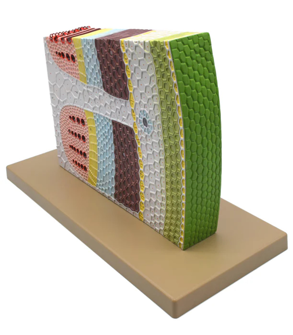 The detailed 3D rendering of a dicot stem section, with both transverse and longitudinal views, is ideal for studying the structure and function of a dicot stem. Key features are colored and numbered for comparison with the key that is included. This model provides a visually and kinesthetically effective method for studying the structure and function of the various structures of a dicot stem. The model is mounted on a sturdy ABS plastic base for display.