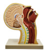 Model for use in the visual demonstration of a nasopharyngeal swab test used for testing for many respiratory viruses and airborne disease. Fully three-dimensional with internal anatomy shown on cross-section. Made of polyvinyl chloride (PVC) plastic for durability and mounted onto backboard. Suitable for many environments including educational and medical uses. A great addition to a laboratory, a doctor's office, or a science classroom.