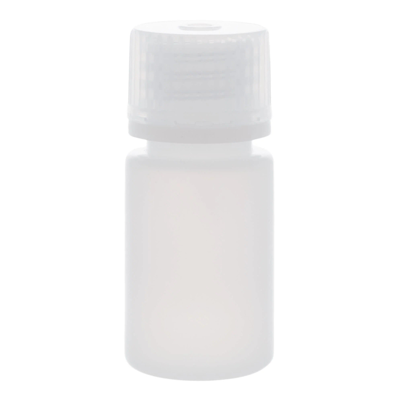 Pack of 12, 15mL narrow mouth reagent bottles made from HDPE with polypropylene caps. Designed for lab and industrial use, these non-sterile, leak-proof bottles are chemical resistant and operate between -100°C to 120°C. Ideal for storing reagents, samples, and solutions, the translucent design enhances liquid visibility for monitoring and measurement.