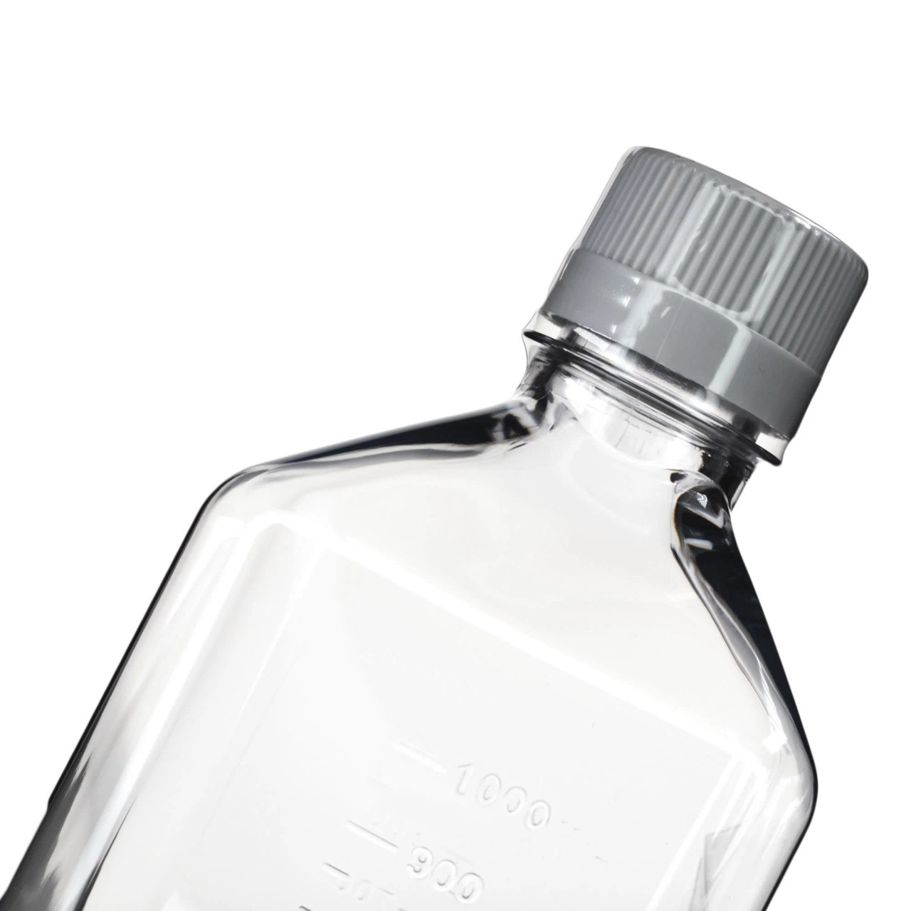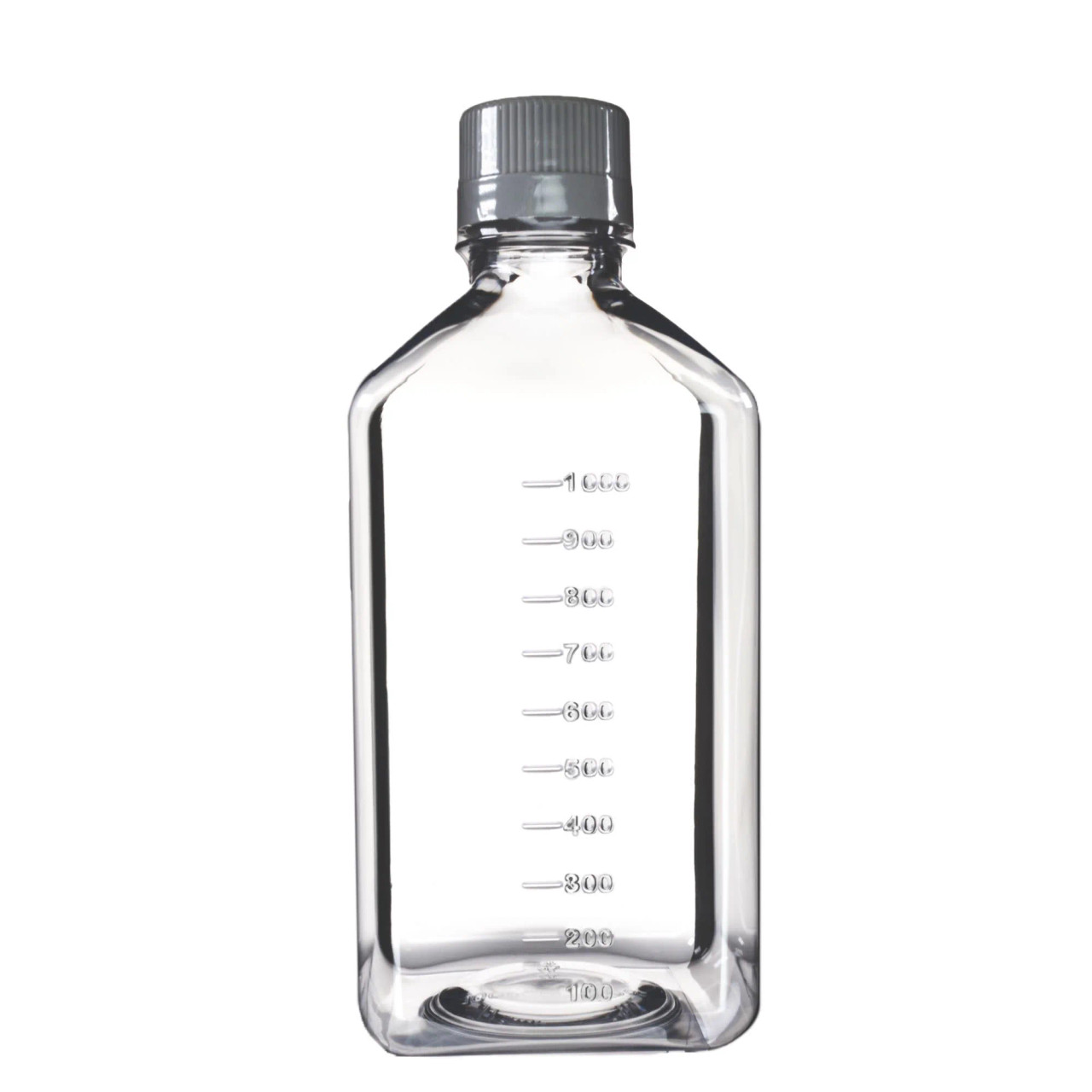 Sterile 1L PET media bottles with HDPE caps. Pack of 12. Leakproof and tamper-evident design for secure lab reagent and buffer storage. Lightweight and durable.