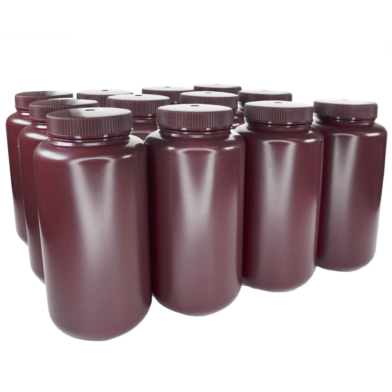 - PACK OF 12 REAGENT BOTTLES || Includes 12 1L wide-mouth amber HDPE bottles with polypropylene caps, designed for lab storage and secure transport of light-sensitive samples.