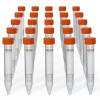 15mL non-sterile polypropylene centrifuge tubes with flat caps, pack of 25. Designed for secure sample storage, research, and laboratory applications. USP Class VI, FDA compliant, and suitable for various lab environments.