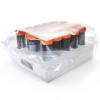 Pack of 25 non-sterile 50mL amber centrifuge tubes made from polypropylene with a self-standing design, flat caps, and racked packaging. Amber color protects light-sensitive samples from degradation. Ideal for laboratory sample storage and centrifugation.
