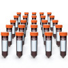 15mL amber polypropylene centrifuge tubes, non-sterile, with flat caps. Designed for light-sensitive sample storage. Pack of 25, lab-grade, suitable for research and molecular biology.