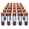 Pack of 25 sterile 50mL amber centrifuge tubes made from polypropylene with a self-standing design and flat caps. Designed to protect light-sensitive samples, these tubes are ideal for laboratory storage, centrifugation, and processing.