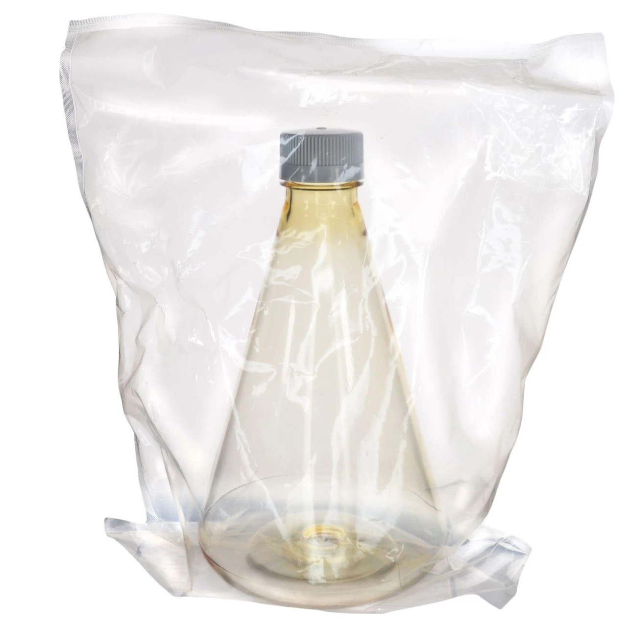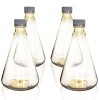 2L sterile polycarbonate Erlenmeyer flasks with non-vented caps, pack of 4. Flat bottom for stability, impact-resistant design, and gamma sterilized for lab applications. Ideal for cell culture, media prep, and chemical storage.