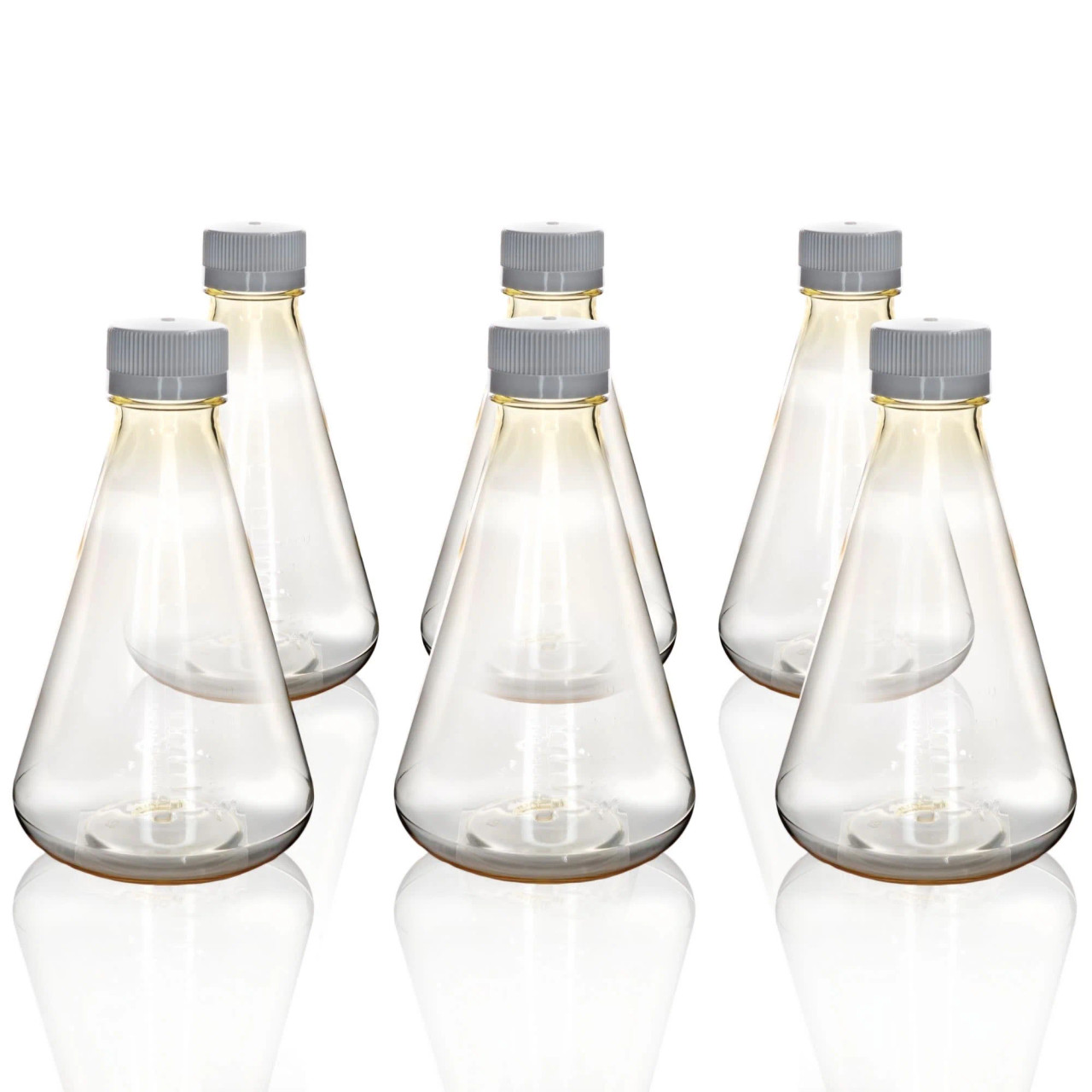 - PACK OF 6 ERLENMEYER FLASKS || Includes 6 sterile 1L polycarbonate flasks with non-vented caps for secure storage and mixing.