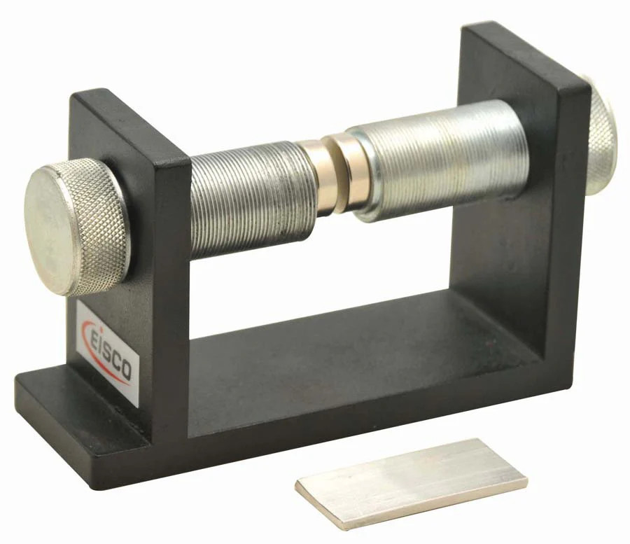 It's a strong, general purpose lab. magnet convenient for experiments in magnetic induction. Neodymium Magnets 20 mm dia. on an iron base. Field strength can be adjusted between 100 and 7500 Gauss. Adjustment Screws Gap can be varied between 0.4 cm and 8.5 cm Versatile base is used for freestanding positions or mounted on a stand. With flat pole pieces to provide a more uniform field when needed.