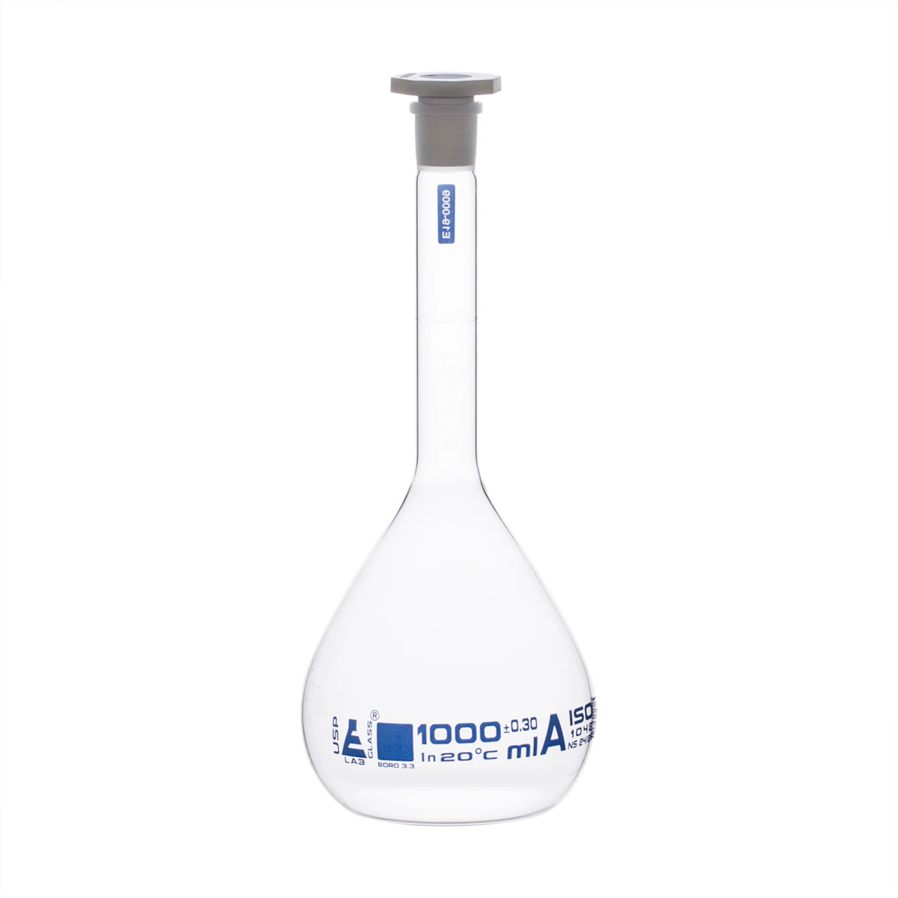 Eisco Labs: Volumetric Flask 1000 ml Class A USP with PP Stopper & Cert