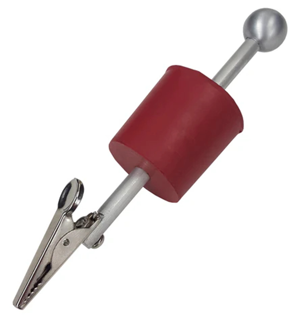 Our Electroscope Rod Assembly is designed to be a replacement for our Flask Type Electroscope (#4-50160), though it can be used to create an electroscope of your own. At one end of the rod assembly there is a clip for holding electroscope foil. The stopper has a bottom diameter of 28mm and a top diameter of 32mm. This size is intended to fit a standard 250ml Erlenmeyer flask. If you want to use a different sized stopper when creating your own electroscope, the rod has 6.2mm diameter and will fit in any stopper with a hole of that size.