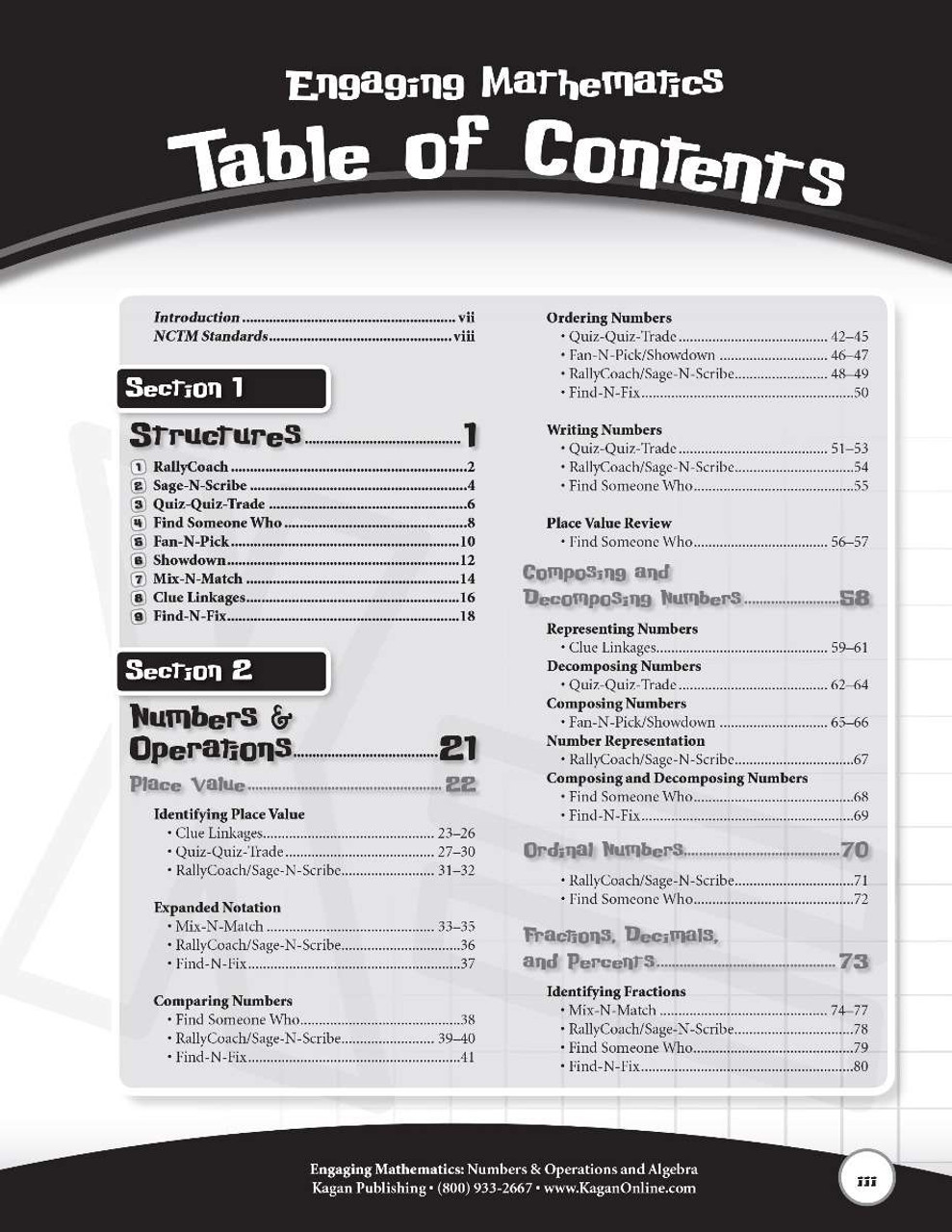 All your need-to-teach numbers & operations and algebra curriculum is matched up with some of Kagan's best structures for math practice including: