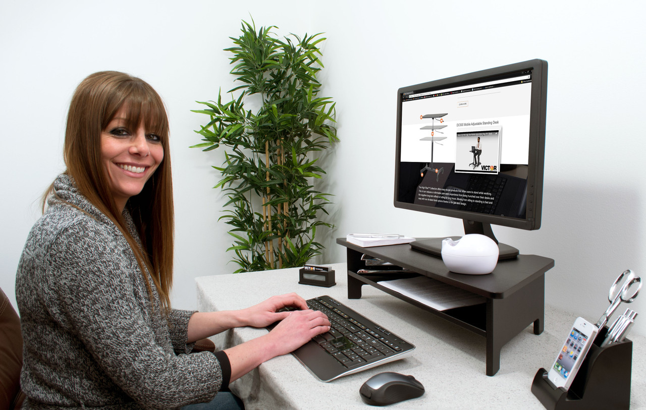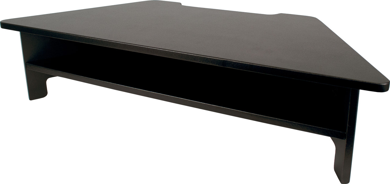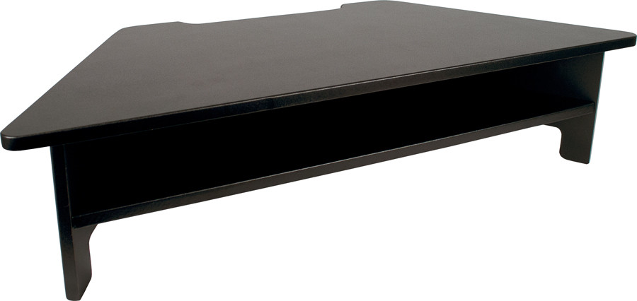 The High Rise Collection™ is a simple solution to a common workplace problem: too much sitting. Studies show that sitting for prolonged periods of time is detrimental to your health. The High Rise™ Collection offers four extraordinary products that allow users to stand while working. This in turn reduces or eliminates the pain users experience from being hunched over their desks and the negative long-term effects of sitting for long hours. The DC050 High Rise™ Monitor Stand raises your computer display to an ergonomic height. The 27” wide by 11.5” deep surface is 6.5” tall to enable eye-level viewing. Optional height extenders add an additional 1”. Sleek wood construction and a durable laminate coating provide years of use with a modern style. The rear portion of the desk is tapered to fit corner cubicles and notched to help manage cables. The lower shelf stores books, papers, or accessories. Works well as a stand for notebook computers, small printers, all-in-ones, scanners, televisions or fax machines. 27”W X 11.5”L 6.5”H. Includes non-slip rubber pads.