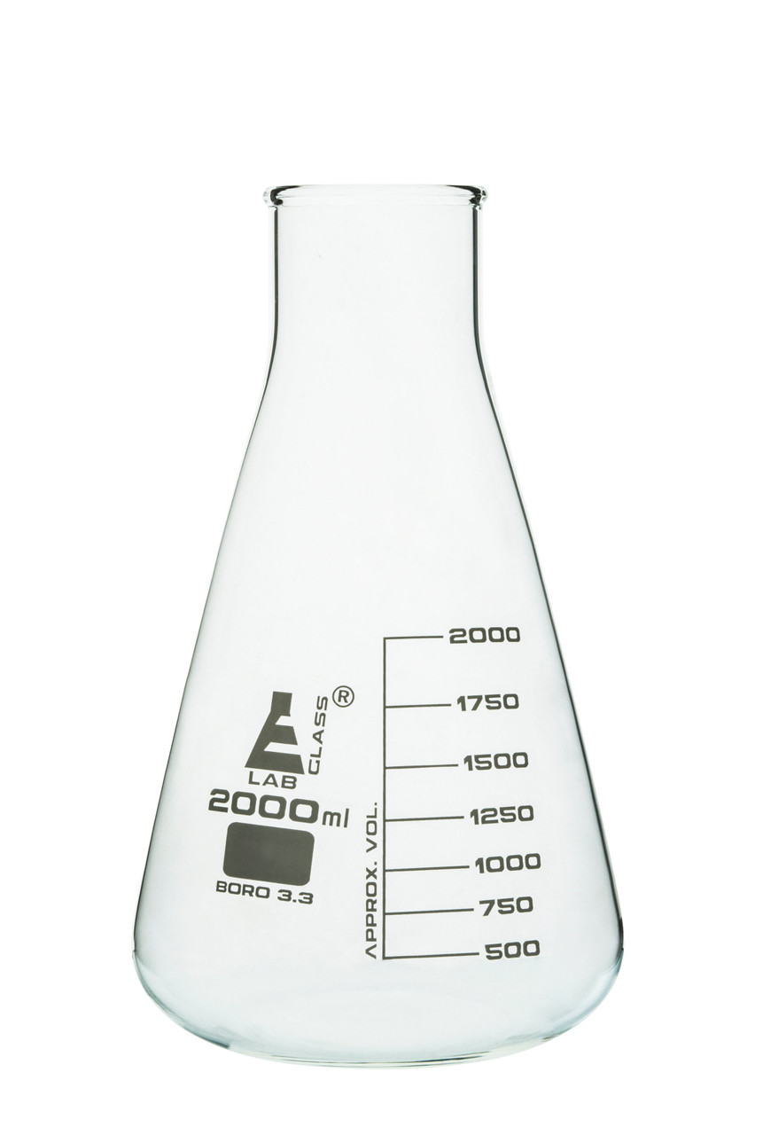 Erlenmeyer Flask, 2000ml - Borosilicate Glass - Wide Neck, Conical Shape - White Graduations - Eisco Labs