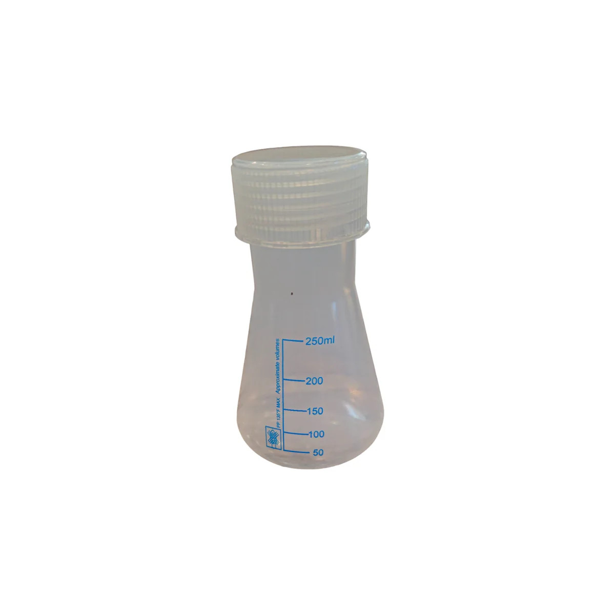 Erlenmeyer Polypropylene 250ml with screw cap and graduations up to 250ml x 50ml.
