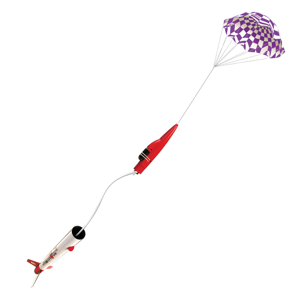 Reach new heights with the AstroCam's impressive projected max altitude of 900 feet. From liftoff to touchdown, every moment is recorded in stunning detail, providing a bird's-eye view of the landscape below. The integrated 15-inch parachute recovery system ensures a safe and smooth descent, preserving both your rocket and your priceless footage!