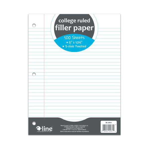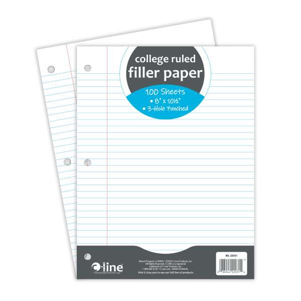 - College ruled format bright white paper is lined with margin space to allow for neat writing